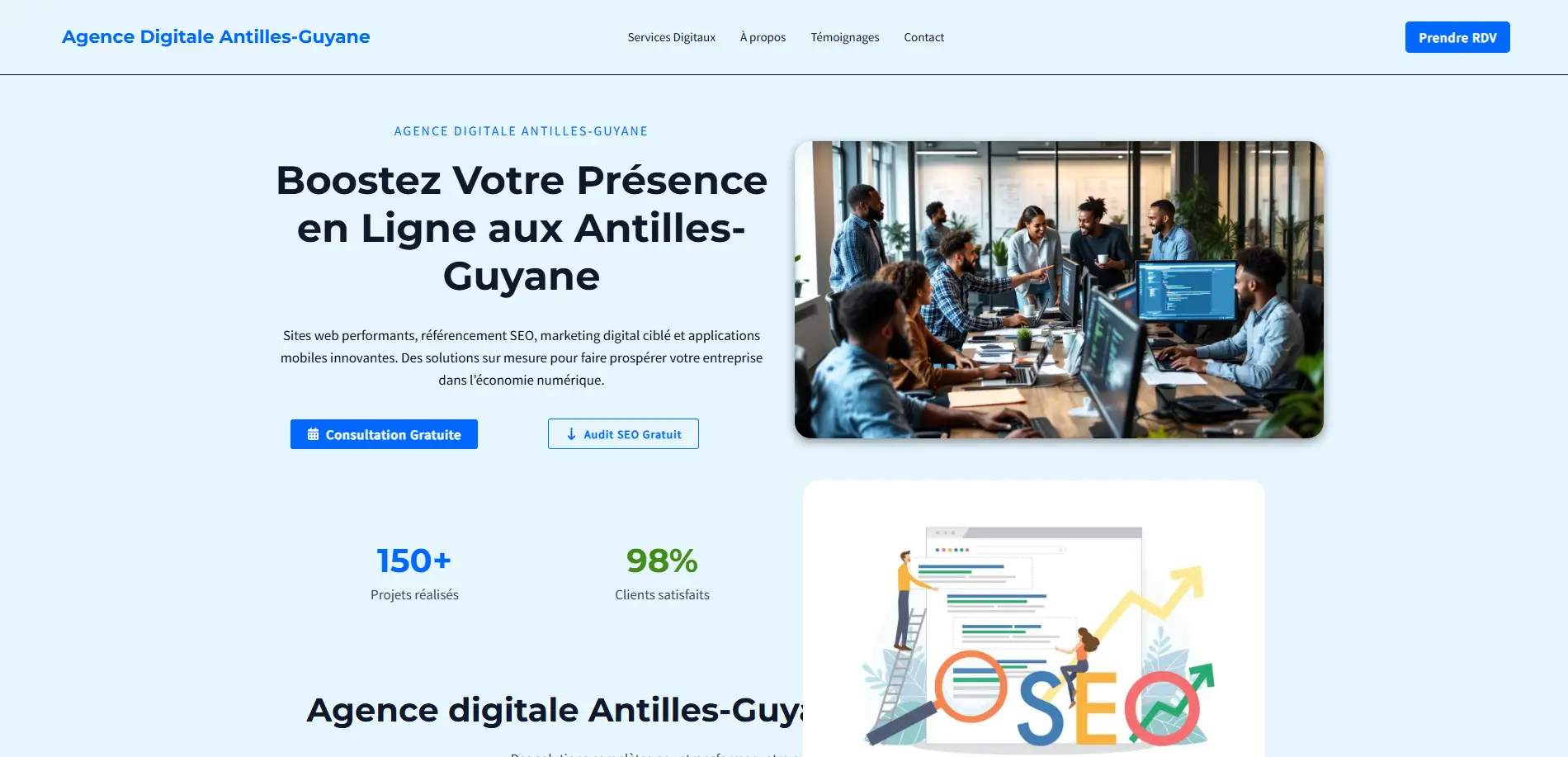 Agence Antilles-Guyane : Création d'un site B2B avec un système de prise de rendez-vous performant - Présentation