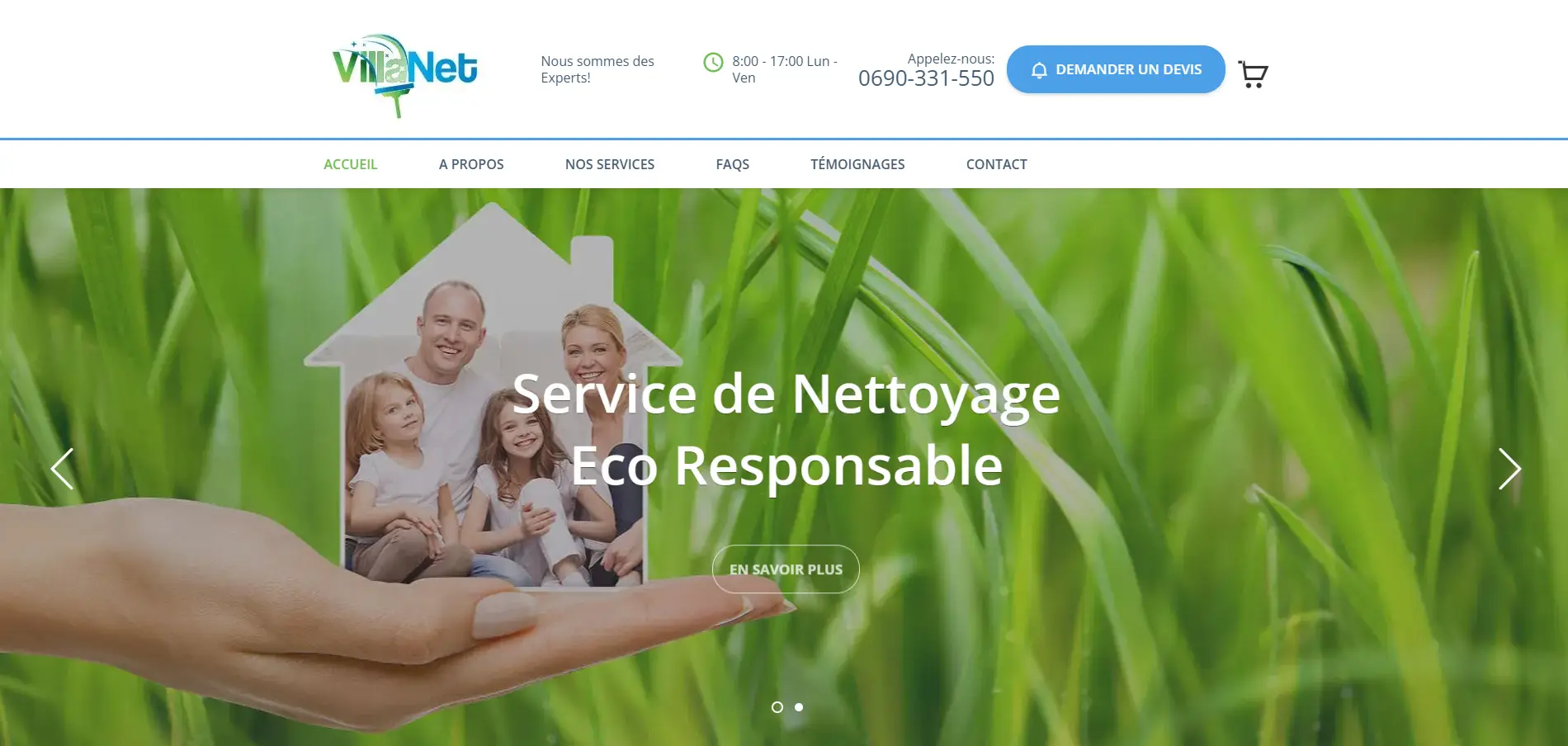 Réussite de la création site web pour service local pour Villa Net. Un site performant pour la prise de devis et l'acquisition de nouveaux clients.